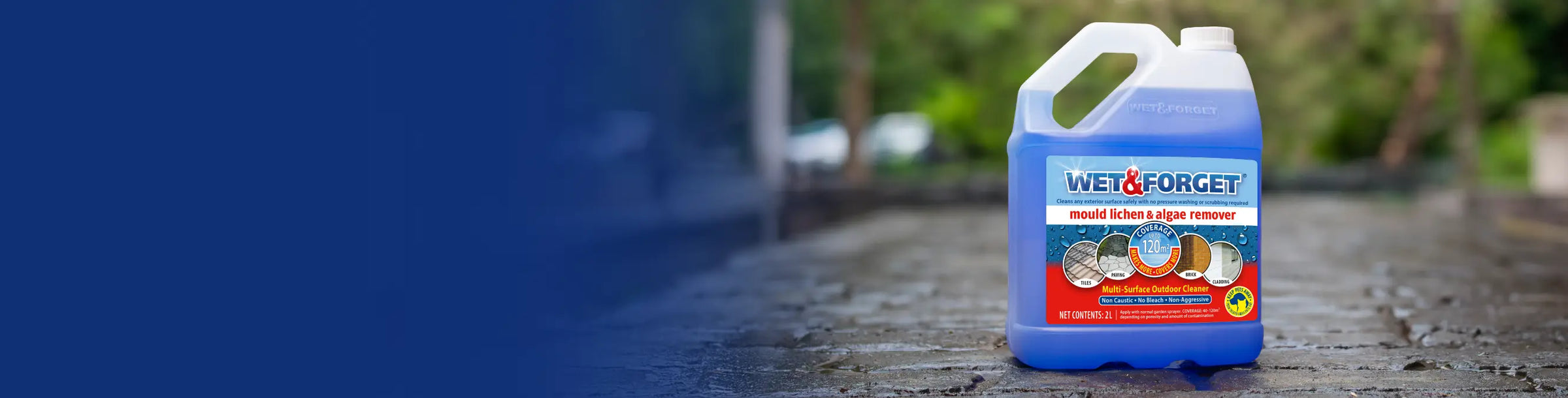Our flagship product, Wet & Forget Outdoor Mould, Lichen, and Algae Remover, has earned its reputation for tackling tough stains and grime on surfaces like patios, driveways, and roofs.